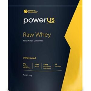Powerus Raw Whey 1kg (Unflavoured), Whey Protein Concentrate 80%, 24g Protein, 5.15 g BCAA, 4.03 g Glutamine Buy product