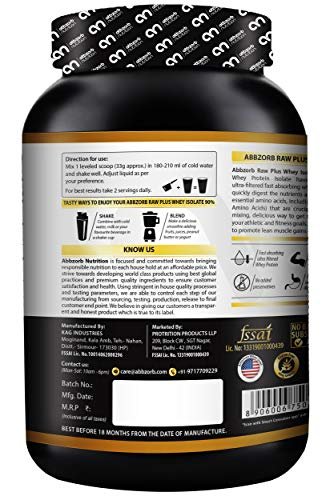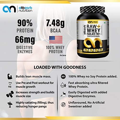 ✅PURE 90% WHEY PROTEIN ISOLATE– Abbzorb Nutrition’s Raw+ Whey Isolate 90% helps to gain lean muscles and supports muscle recovery. This Raw Whey Isolate Powder provides optimum nutrition after heavy exercise to repair muscle loss.