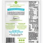 21 grams of organic plant based protein (pea, brown rice, chia seeds), 5 grams of organic dietary fiber, 5 grams of net carbs, 0 grams of sugar, 150 calories per serving